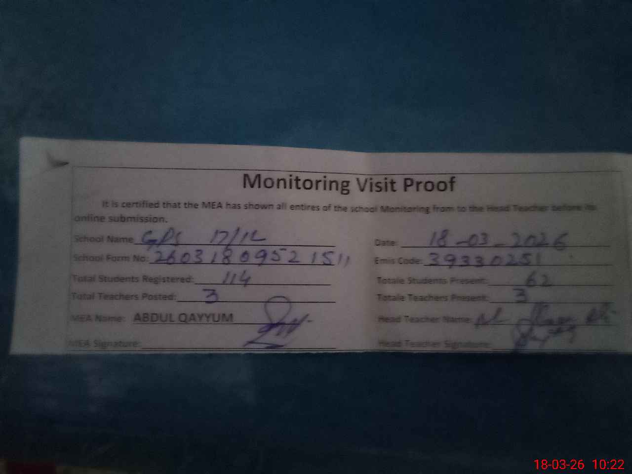 | EMIS Code: 39330251 | Name of School: GPS CHAK 17/1-L | |||