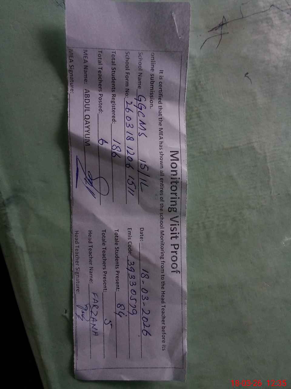 | EMIS Code: 39330579 | Name of School: GGCMS CHAK NO. 15/1-L | |||