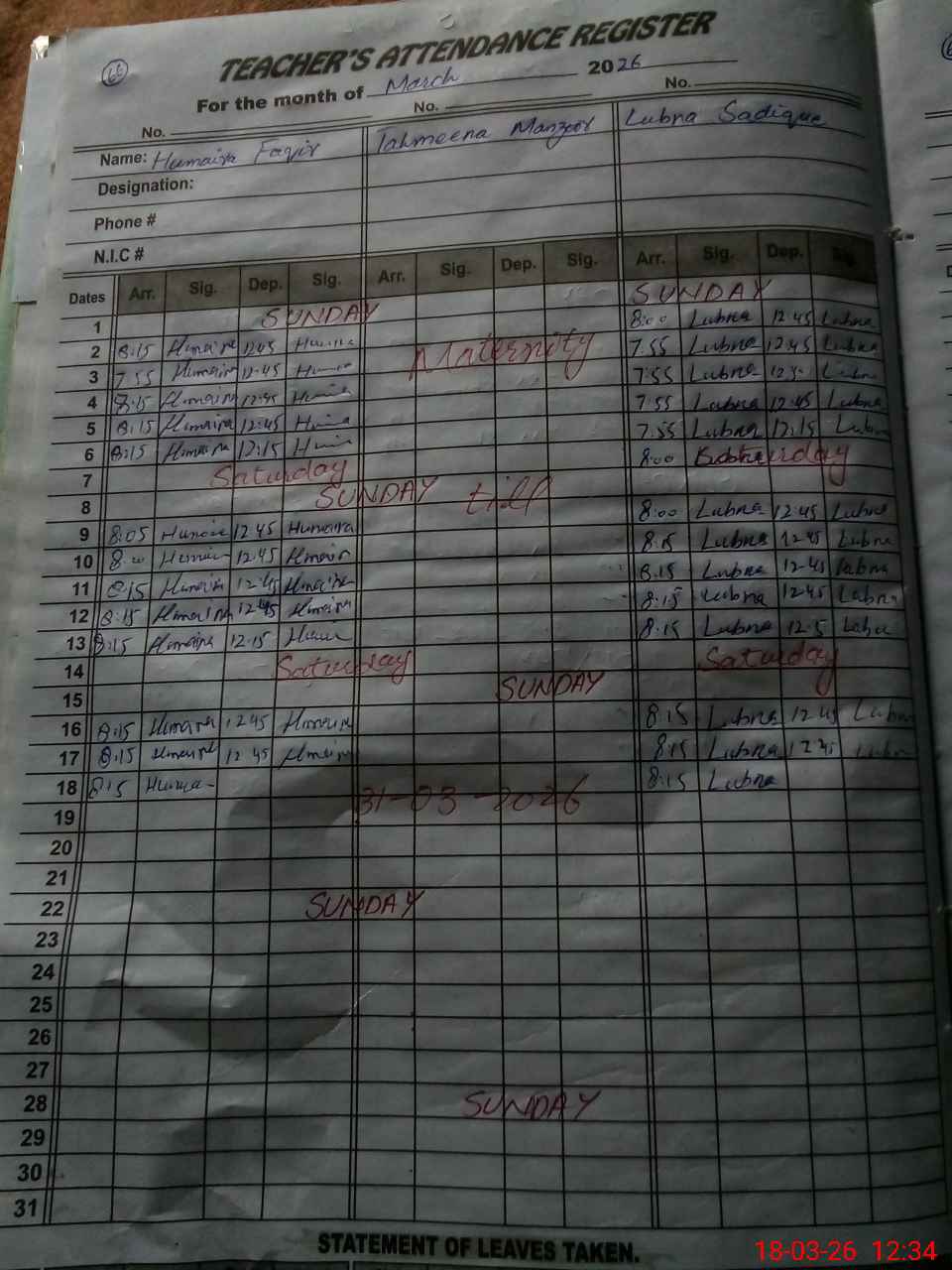 | 35**** | Ta**** Ma**** | PST | Regular | 28 | 0 | 0 | 28 | 0 | 0 | 0 | 0 | 0 | Maternity |