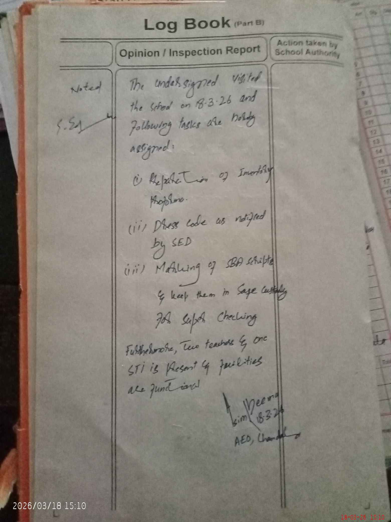 | Certified that this School was Inspected by the Undersigned MEA/DMO Today and the Information Stated Above is as Per Record. | |||||