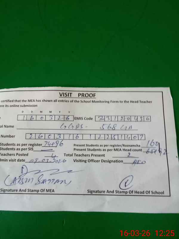 | EMIS Code: 33120436 | Name of School: GGPS CHAK 568 GB LUNDIANWALA | |||