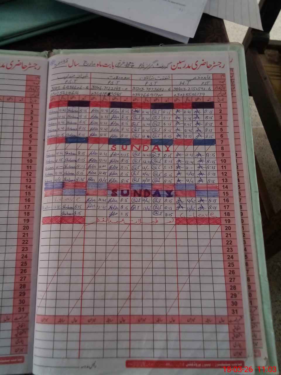 | Name: AB**** Na**** Designation: (School Headmaster's/Headmistress's) PST Phone/Cell Number: 03**** |