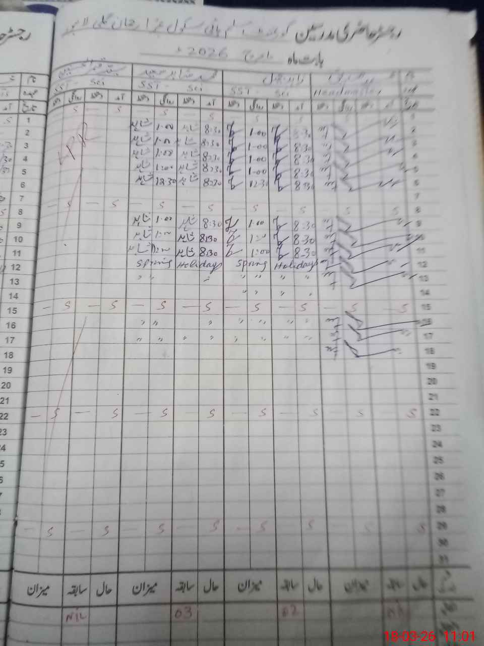 | Remarks (Use Separate Page if Required): Teacher Arshad Siddique EST is marked absent today as approved medical leave wef 15 March 2026 and till date is not available Head master Muhammad Siddique is marked absent today as physical not available in School as per attendance register he is present ECE Nursary One Two Three and 4th class Exam off today 9th and 10th classes off today | |||||