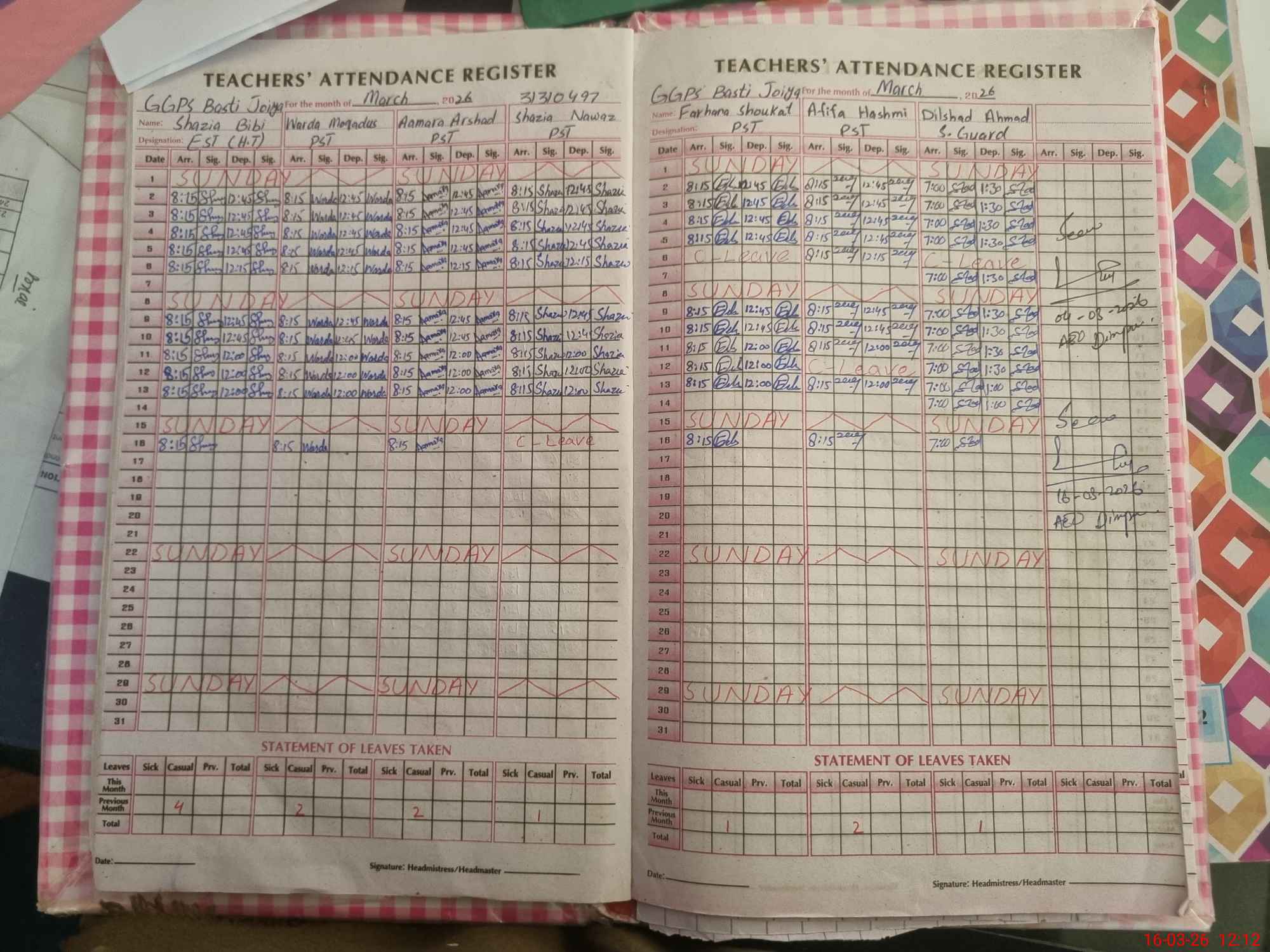 | Leave | Duty | Absent | Maternity | Medical | Ex- Pak |