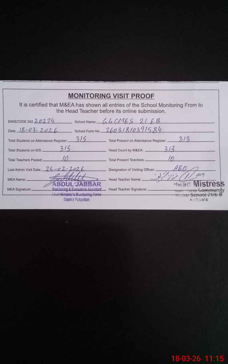 | Certified that this School was Inspected by the Undersigned MEA/DMO Today and the Information Stated Above is as Per Record. | |||||