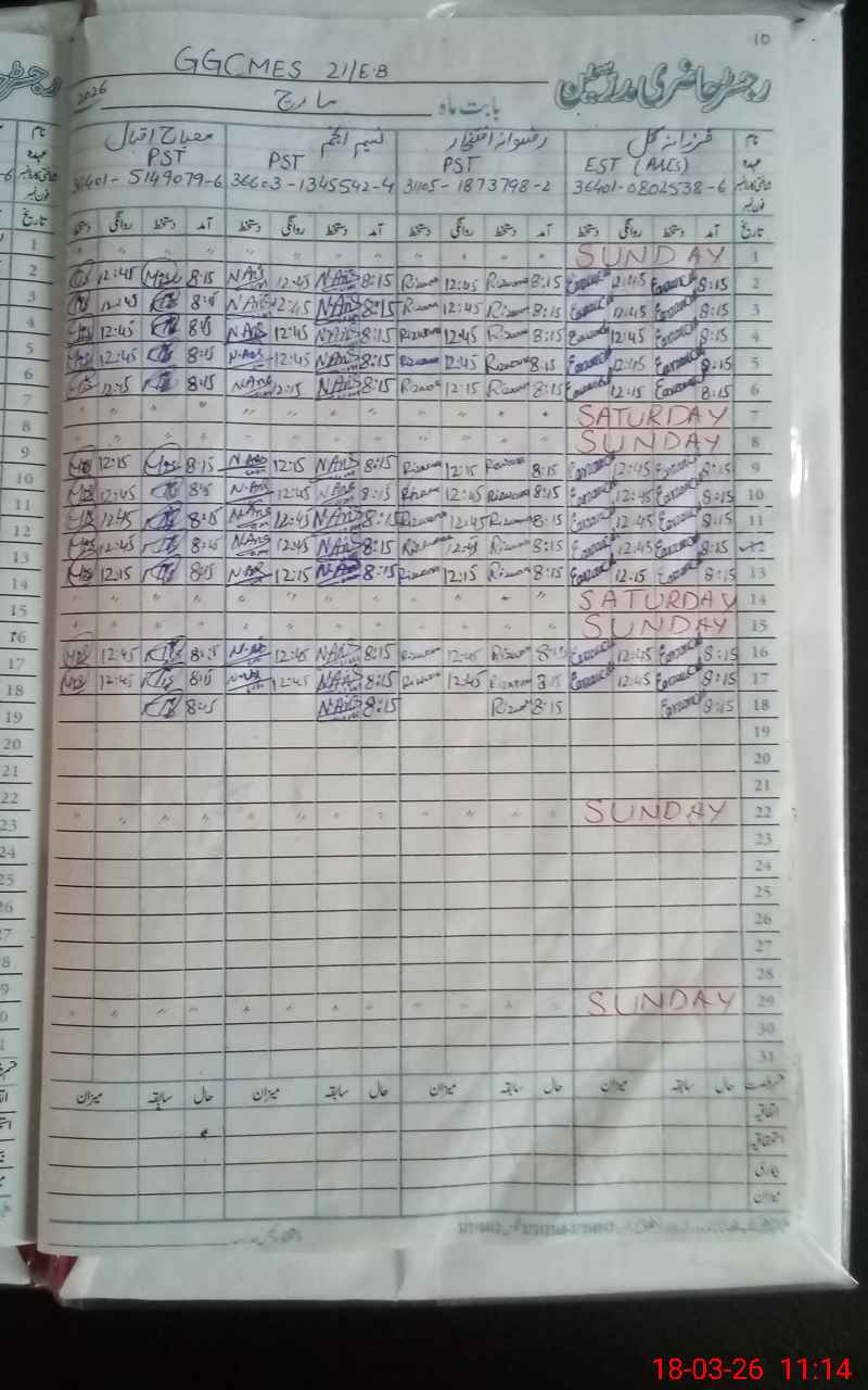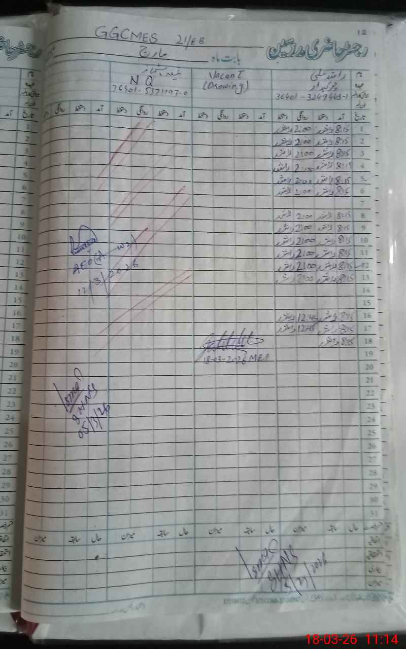 | Name: FA**** SH**** Designation: (School Headmaster's/Headmistress's) SST (GENERAL) Phone/Cell Number: 03**** |