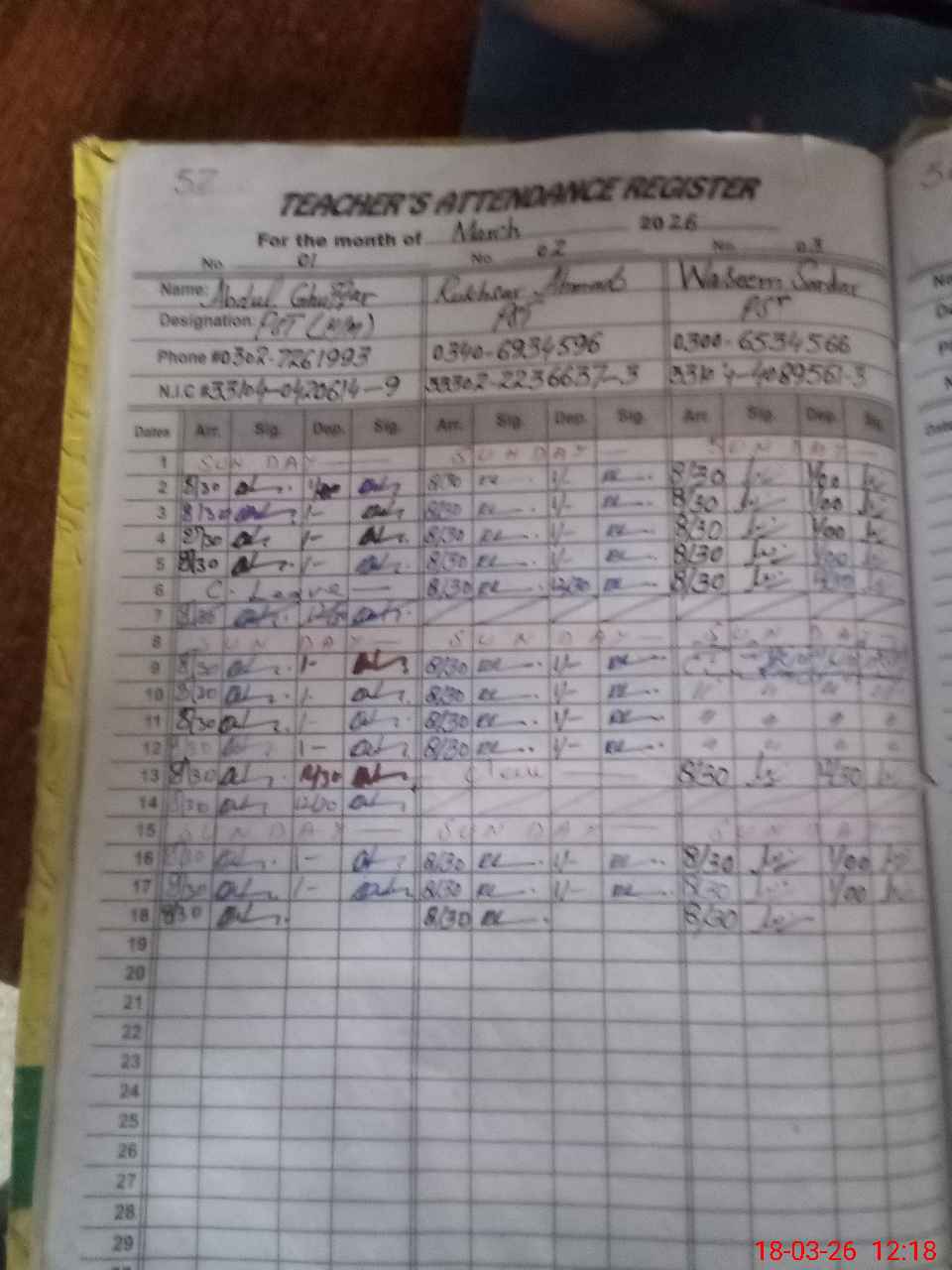 | Name: AB**** GH**** Designation: (School Headmaster's/Headmistress's) PTC Phone/Cell Number: 03**** |