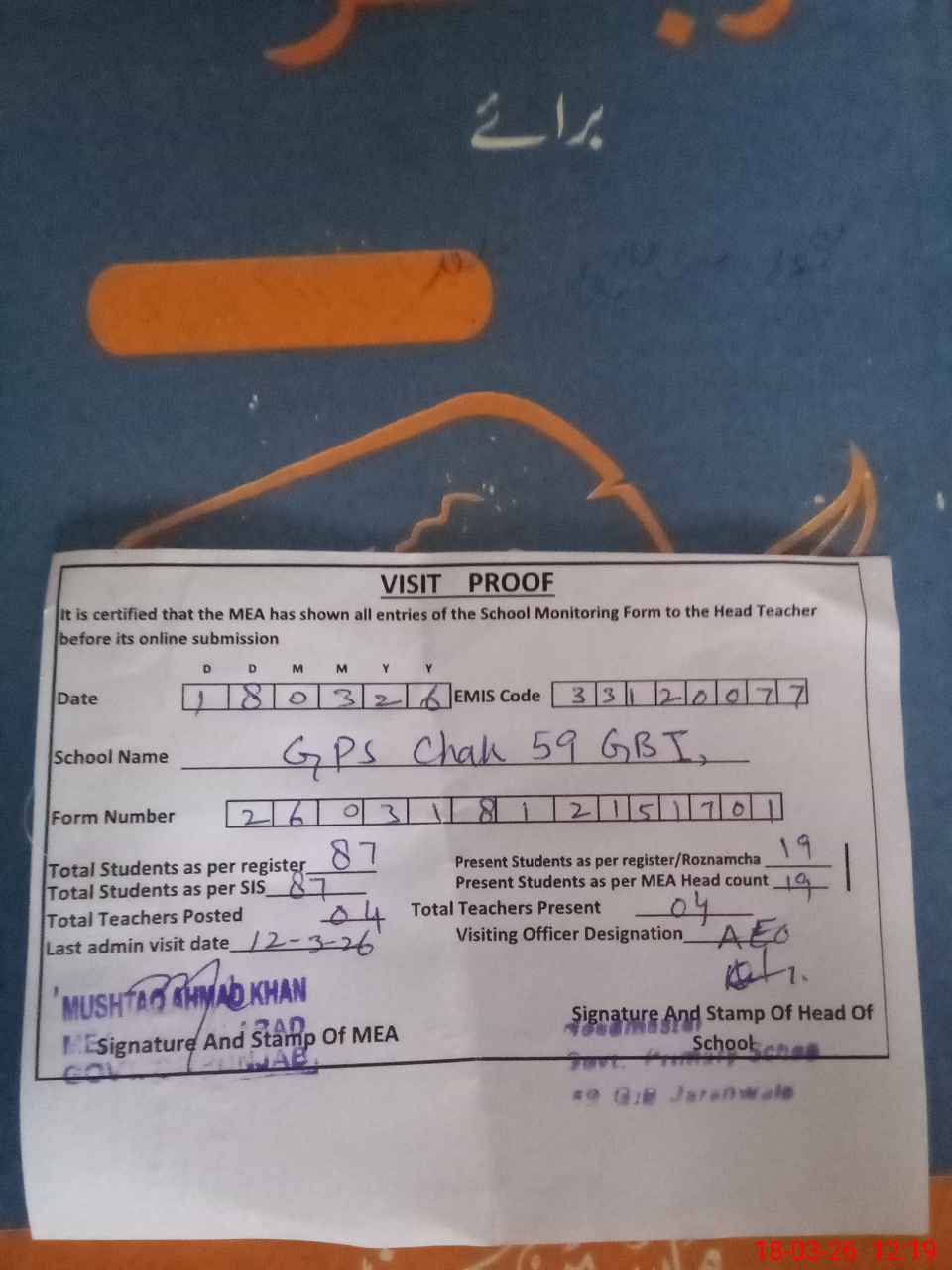 | EMIS Code: 33120077 | Name of School: GPS CHAK 59 GB I | |||