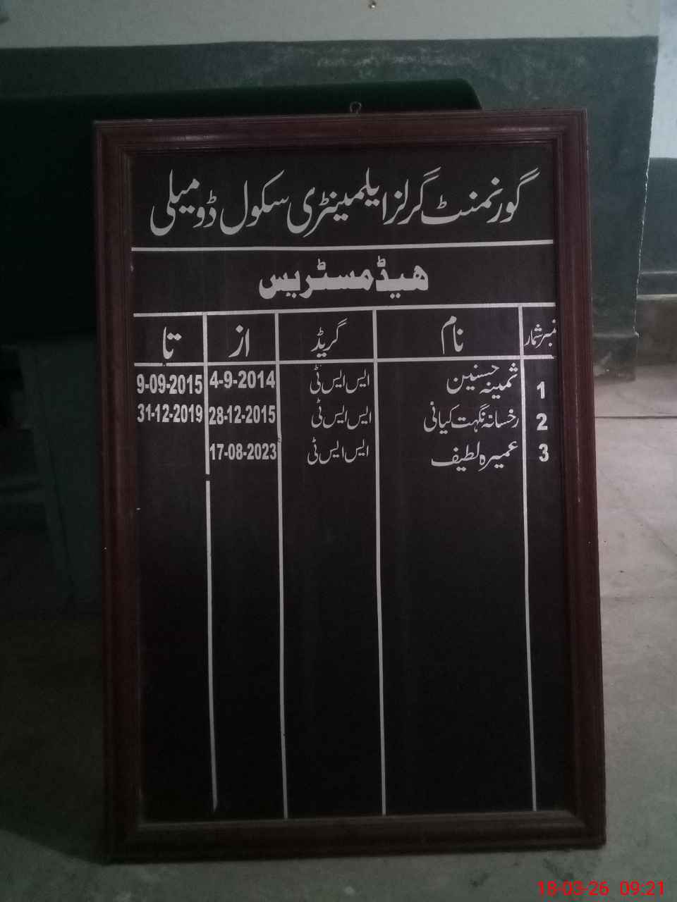| District: JHELUM | Tehsil: SOHAWA | Markaz: DOMELI-FEMALE | Level: Middle | |