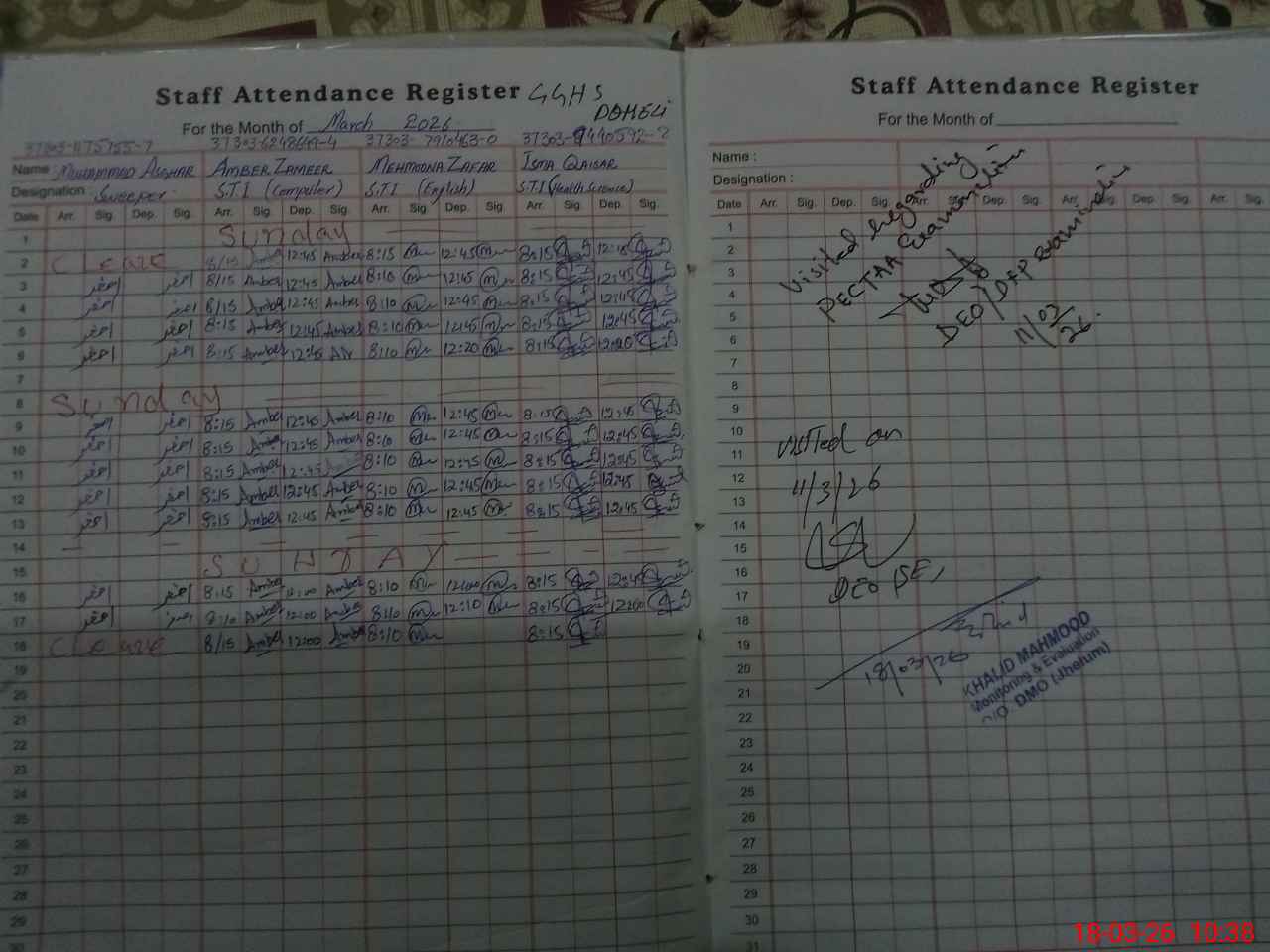 | Total no. of Classrooms: 27 No. of Classrooms Used for Teaching: 18 No. of Classrooms Storing Old Furniture, FTBs, etc: 0Comments if Any: Today on visit primary classes are on off because they have no paper high and higher classes are on off by order of govt |