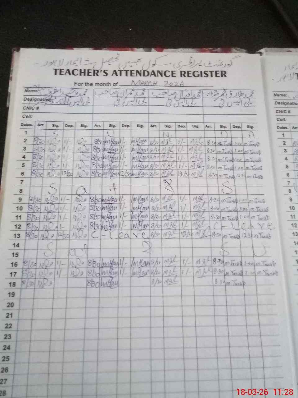 | CNIC | Full Name | Designation | R/C | Absence During Last Calender Month |
