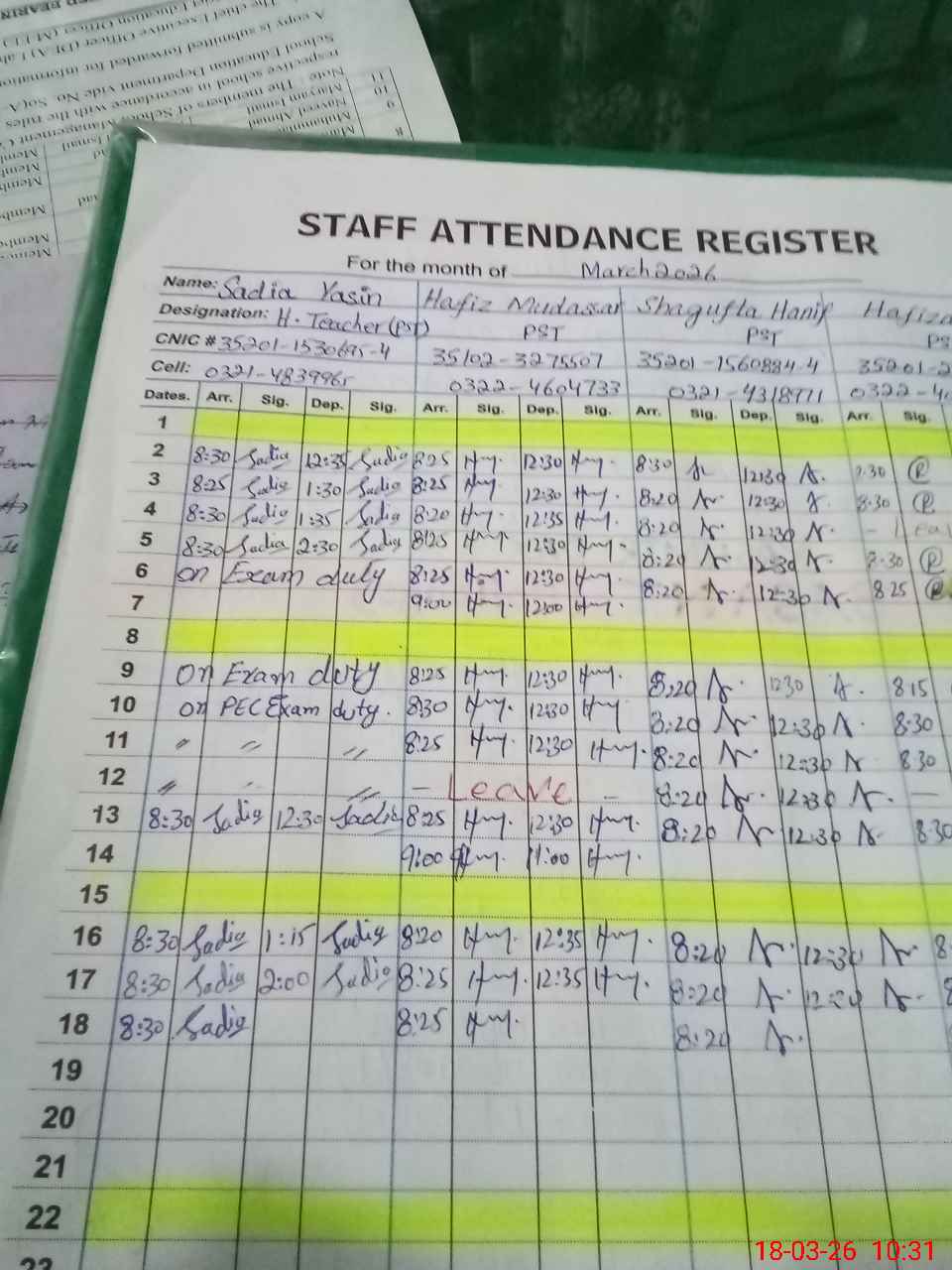 | Name: Sa**** Ya**** Designation: (School Headmaster's/Headmistress's) PST Phone/Cell Number: 03**** |