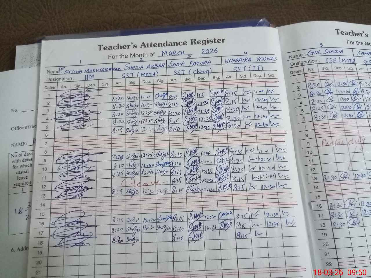 | 35**** | Is**** UlSa**** | EST Science | Regular | 0 | 0 | 28 | 0 | 0 | 0 | 0 | 0 | 0 | Absent (Un-Authorized) |