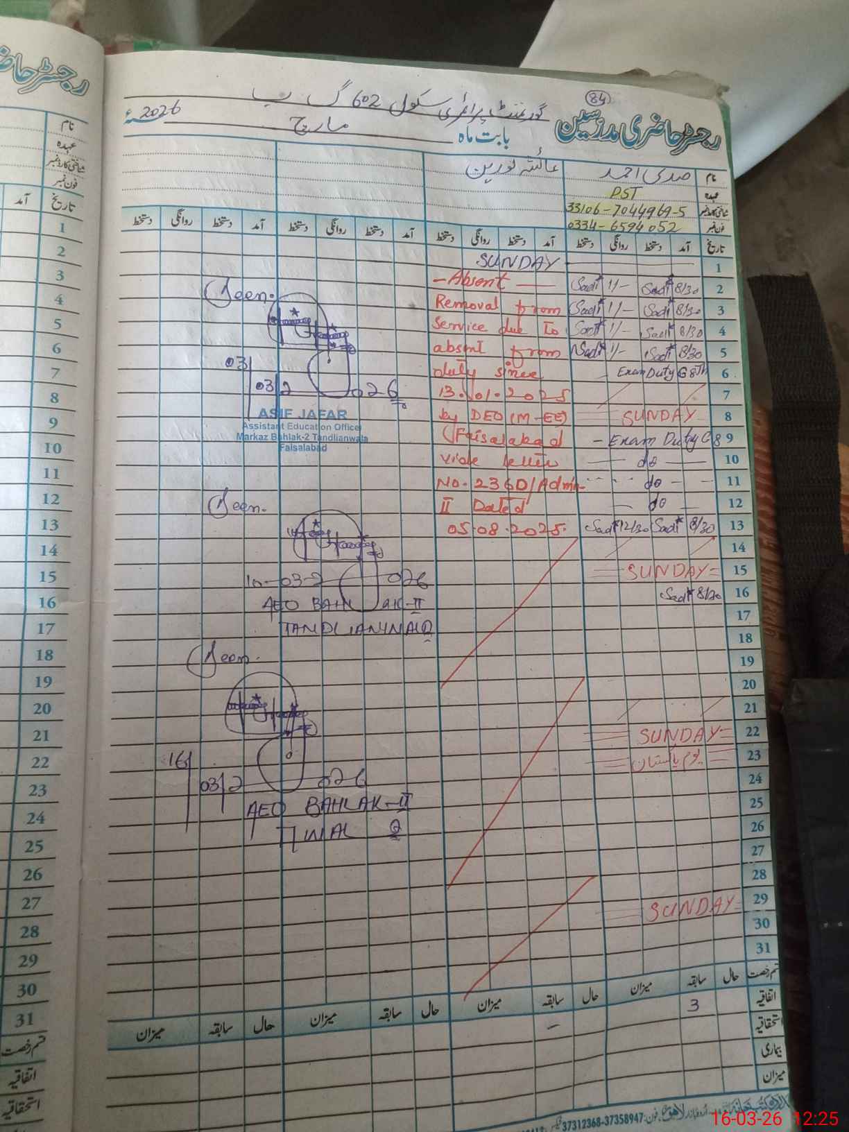| Name: SH**** AL**** Designation: (School Headmaster's/Headmistress's) EST (GENERAL ) Phone/Cell Number: 03**** |