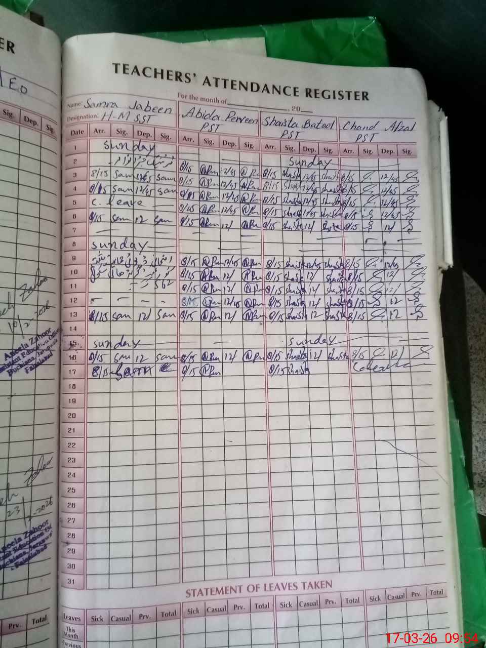 | 33**** | As**** | PST Arts | Regular | 0 | 0 | 28 | 0 | 0 | 0 | 0 | 0 | 0 | Absent (Un-Authorized) |