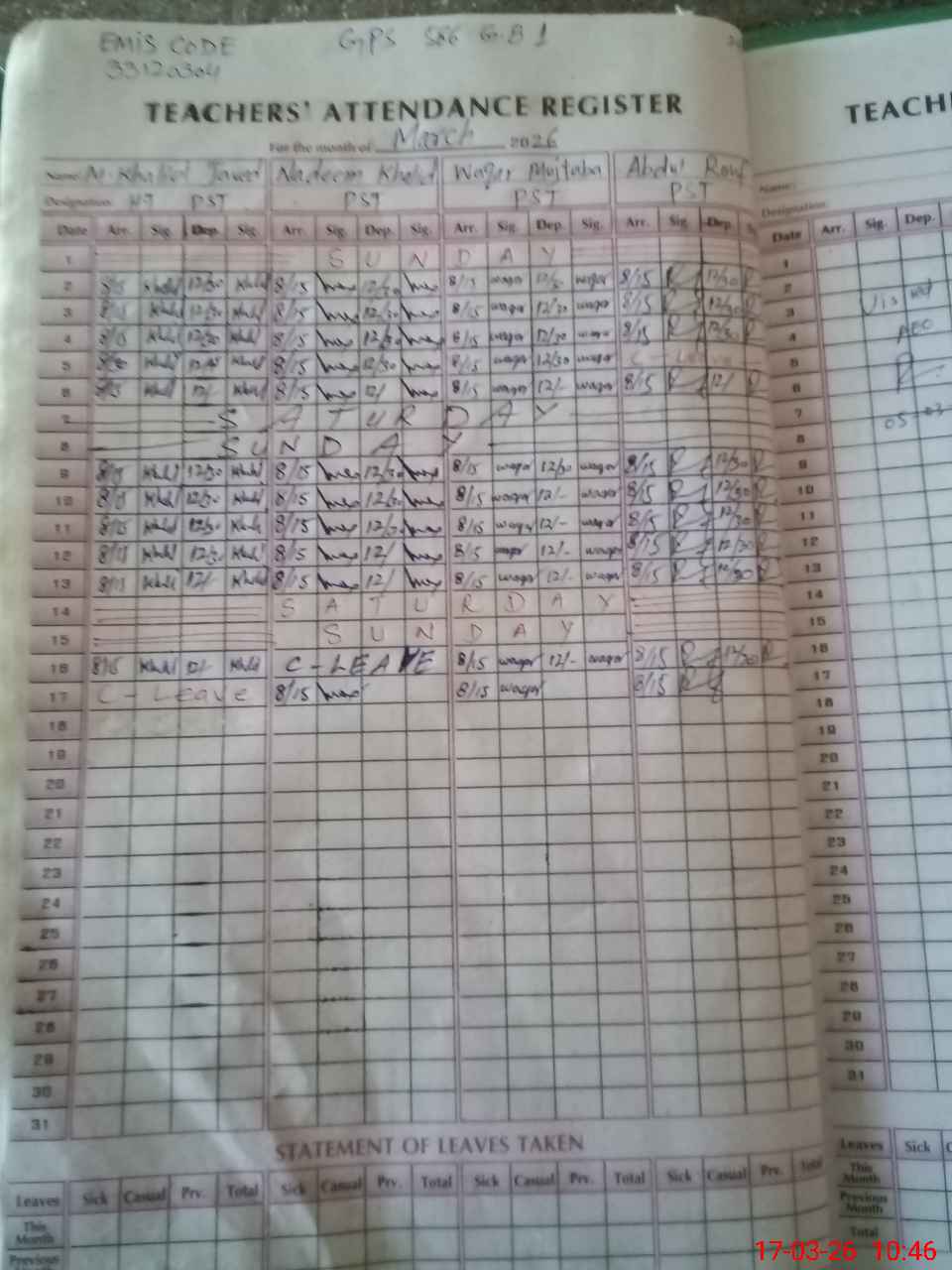 | Name: Kh**** Ja**** Designation: (School Headmaster's/Headmistress's) PST Phone/Cell Number: 03**** |