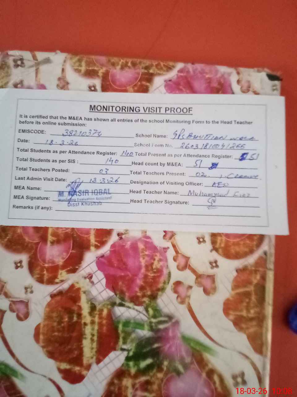 | EMIS Code: 38210374 | Name of School: GPS BHUTTIAN WALA | |||