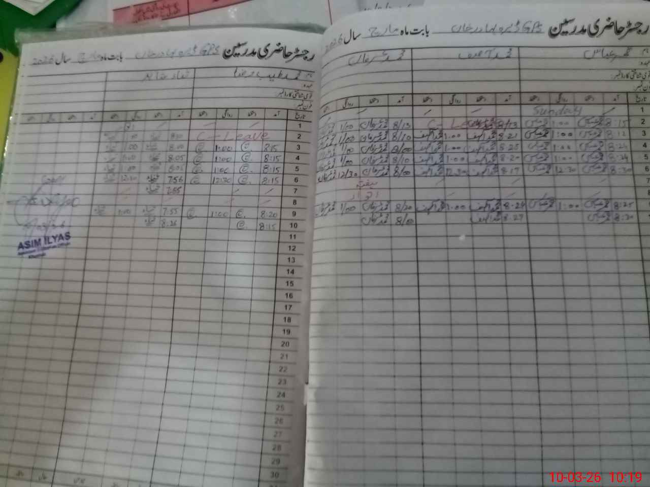| CNIC | Full Name | Designation | R/C | Absence During Last Calender Month |
