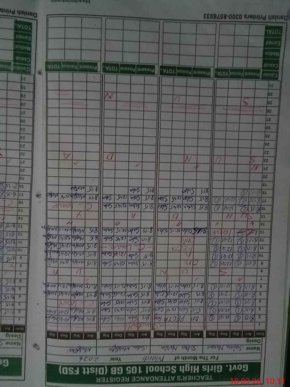 | Name: Na**** Designation: (School Headmaster's/Headmistress's) S.S S Math Phone/Cell Number: 03**** |