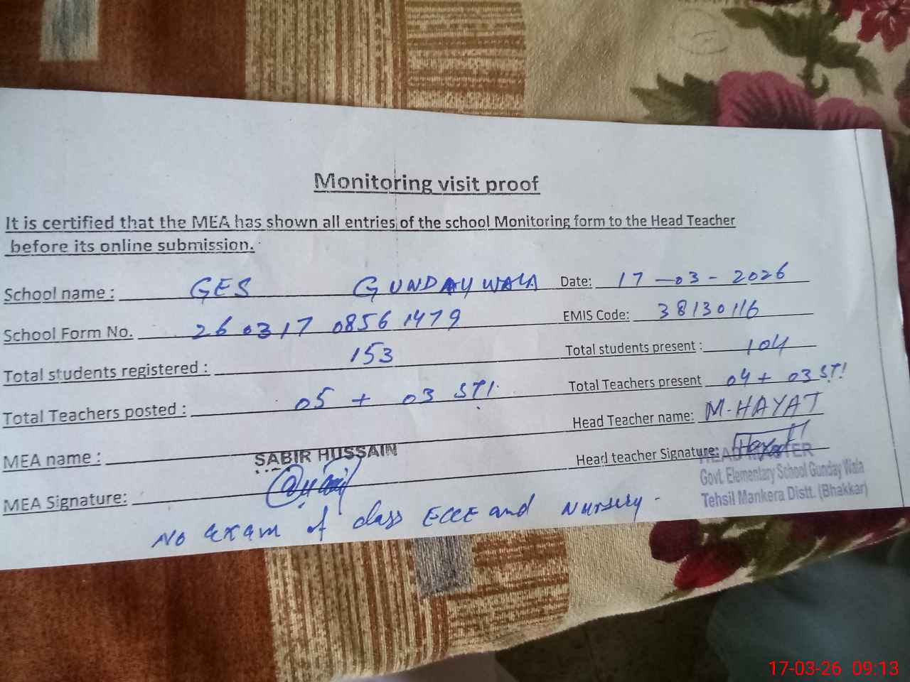 | EMIS Code: 38130116 | Name of School: GES GUNDAY WALA | |||