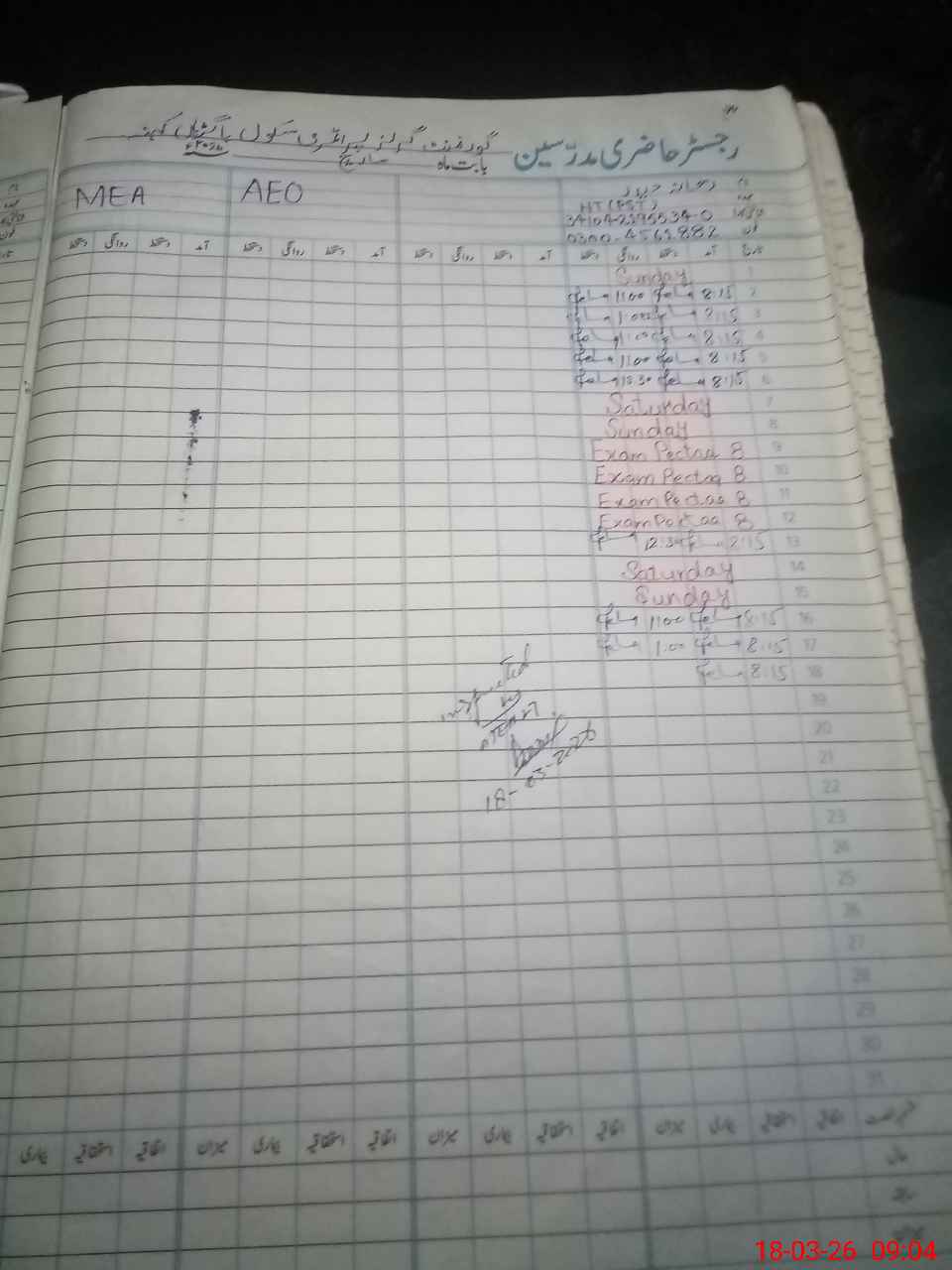 | Attendance Register | Head Teacher | MEA with School | Visit Proof |
