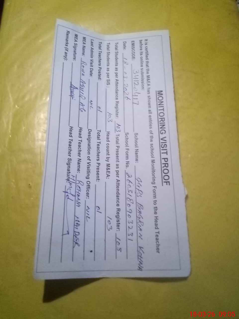| EMIS Code: 34120417 | Name of School: GGPS BAGARIAN KOHNA | |||