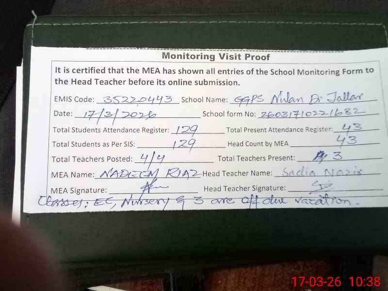 | Certified that this School was Inspected by the Undersigned MEA/DMO Today and the Information Stated Above is as Per Record. | |||||