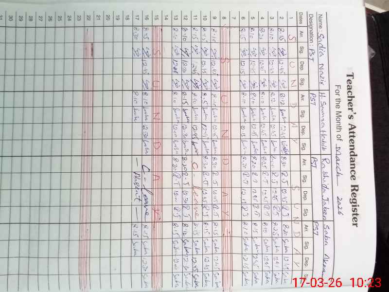 | 35**** | Ra**** Ja**** | PST Arts | Regular | 0 | 0 | 0 | 0 | 0 | 0 | 0 | 0 | 0 | Absent (Un-Authorized) |
