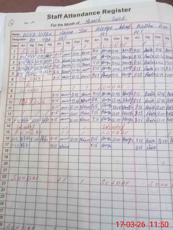 | Name: Af**** Ki**** Designation: (School Headmaster's/Headmistress's) Head Mistress Phone/Cell Number: 03**** |