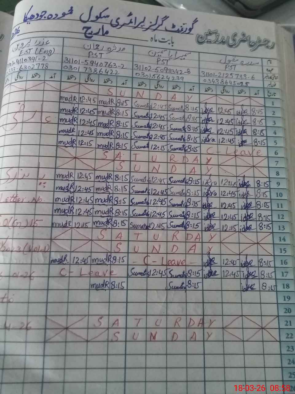 | Name: SI**** MA**** Designation: (School Headmaster's/Headmistress's) E SE SC MATH Phone/Cell Number: 03**** |