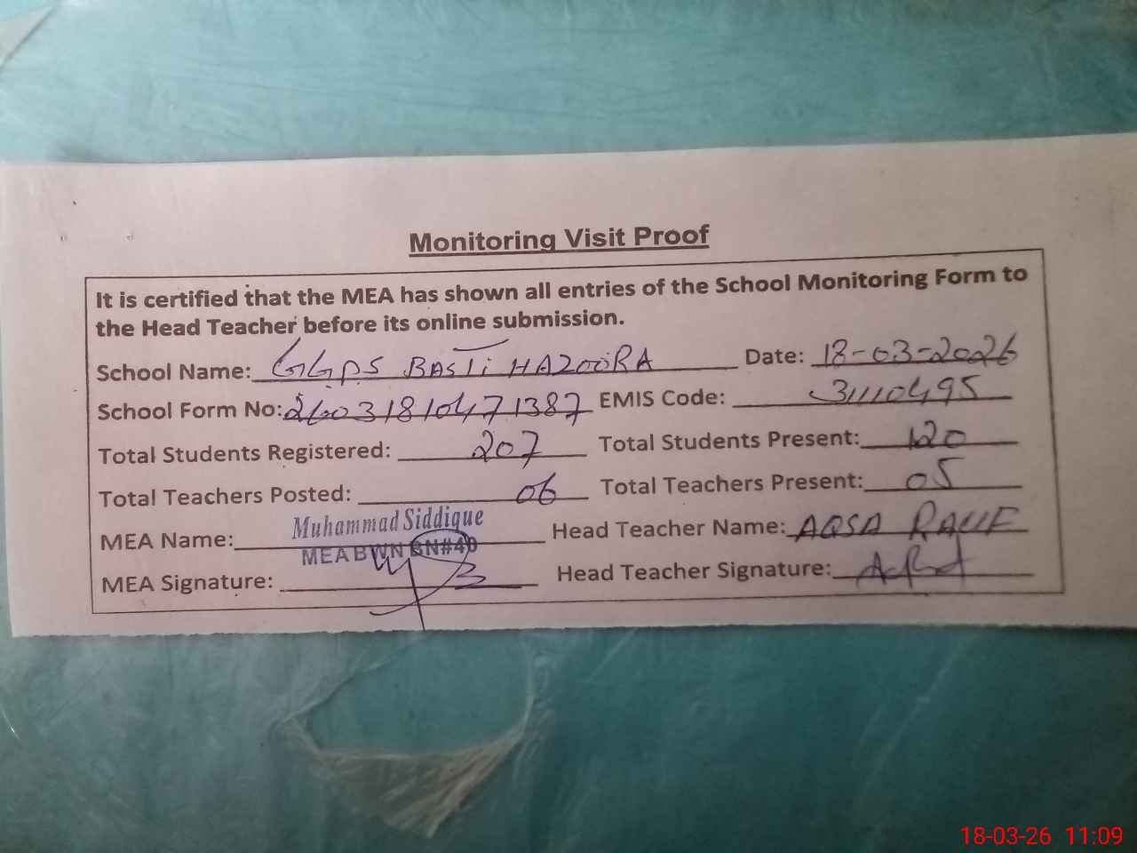 | EMIS Code: 31110495 | Name of School: GGPS BASTI HAZOORA | |||