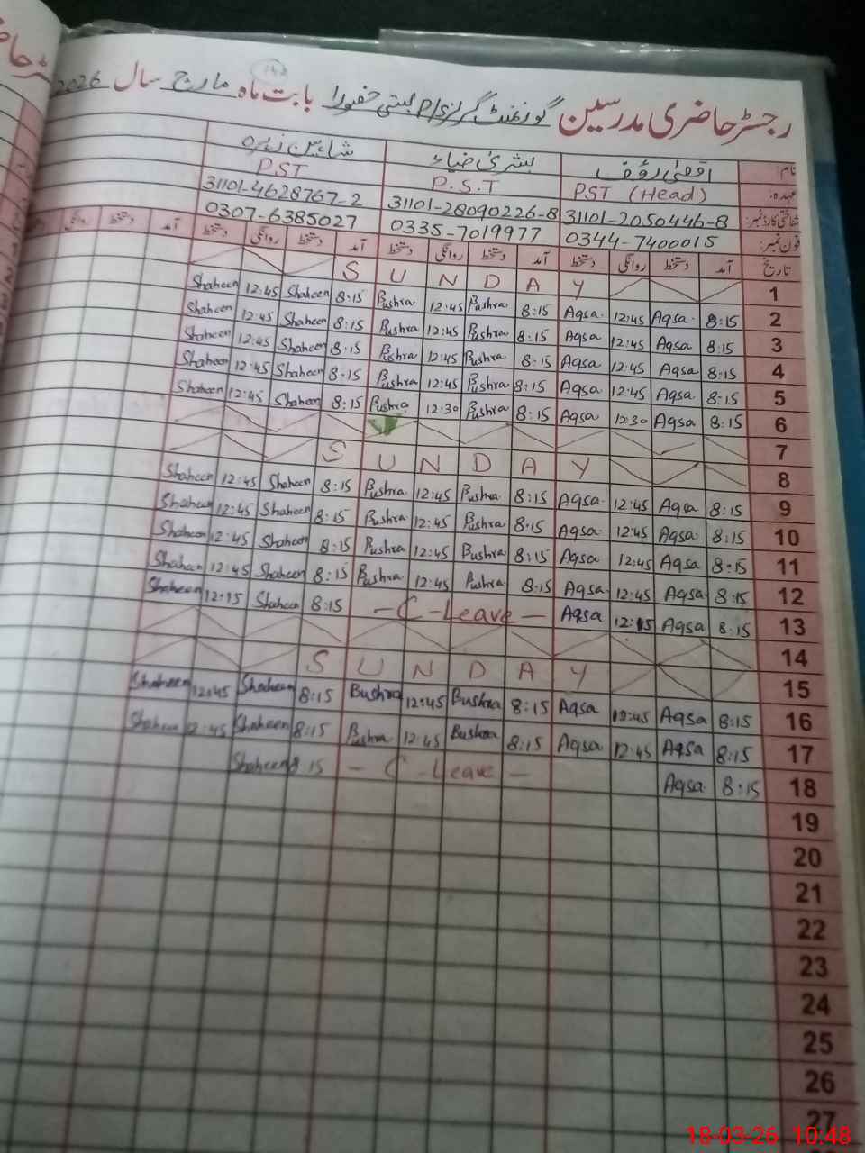 | Name: AQ**** RA**** Designation: (School Headmaster's/Headmistress's) PST Phone/Cell Number: 03**** |