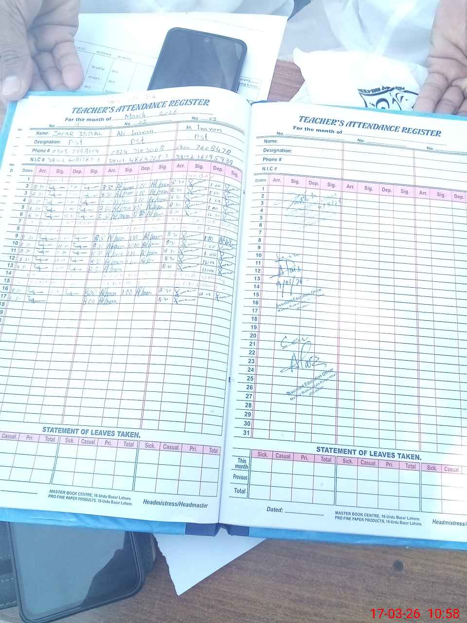 | Name: Al**** Im**** Designation: (School Headmaster's/Headmistress's) PST HEAD Phone/Cell Number: 03**** |