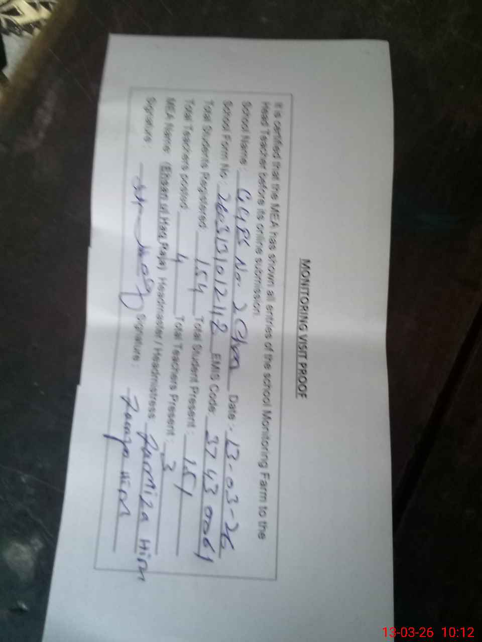 | Certified that this School was Inspected by the Undersigned MEA/DMO Today and the Information Stated Above is as Per Record. | |||||