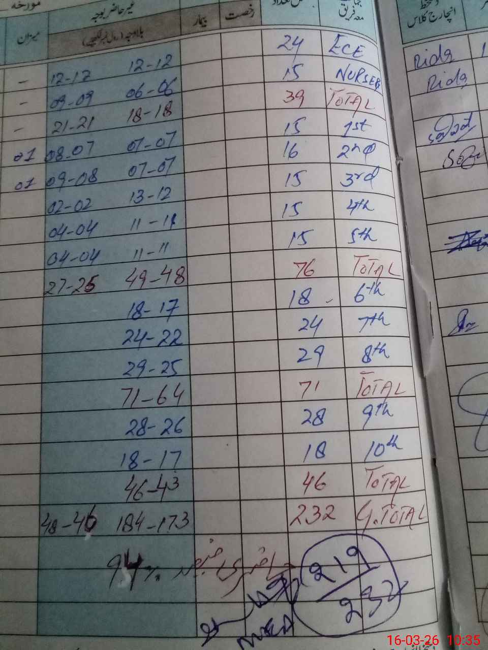 | ECE | Un-admt | K | 1 | 2 | 3 | 4 | 5 | 6 | 7 | 8 | 9 | 10 | Total | |||
