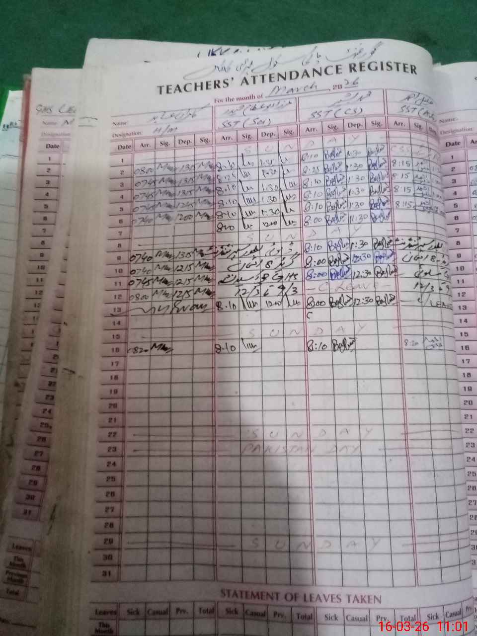 | Leave | Duty | Absent | Maternity | Medical | Ex- Pak |