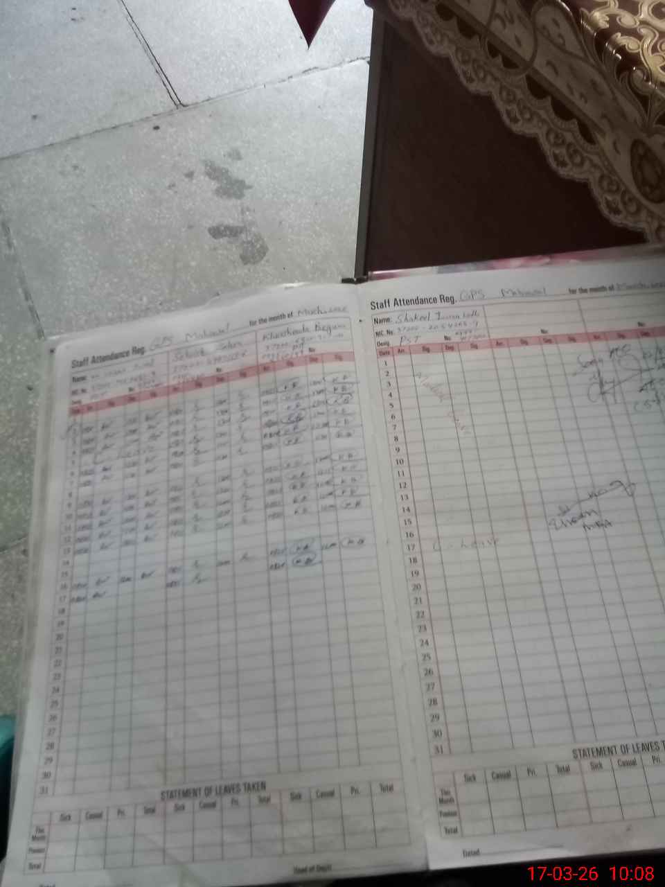 | CNIC | Full Name | Designation | R/C | Absence During Last Calender Month |