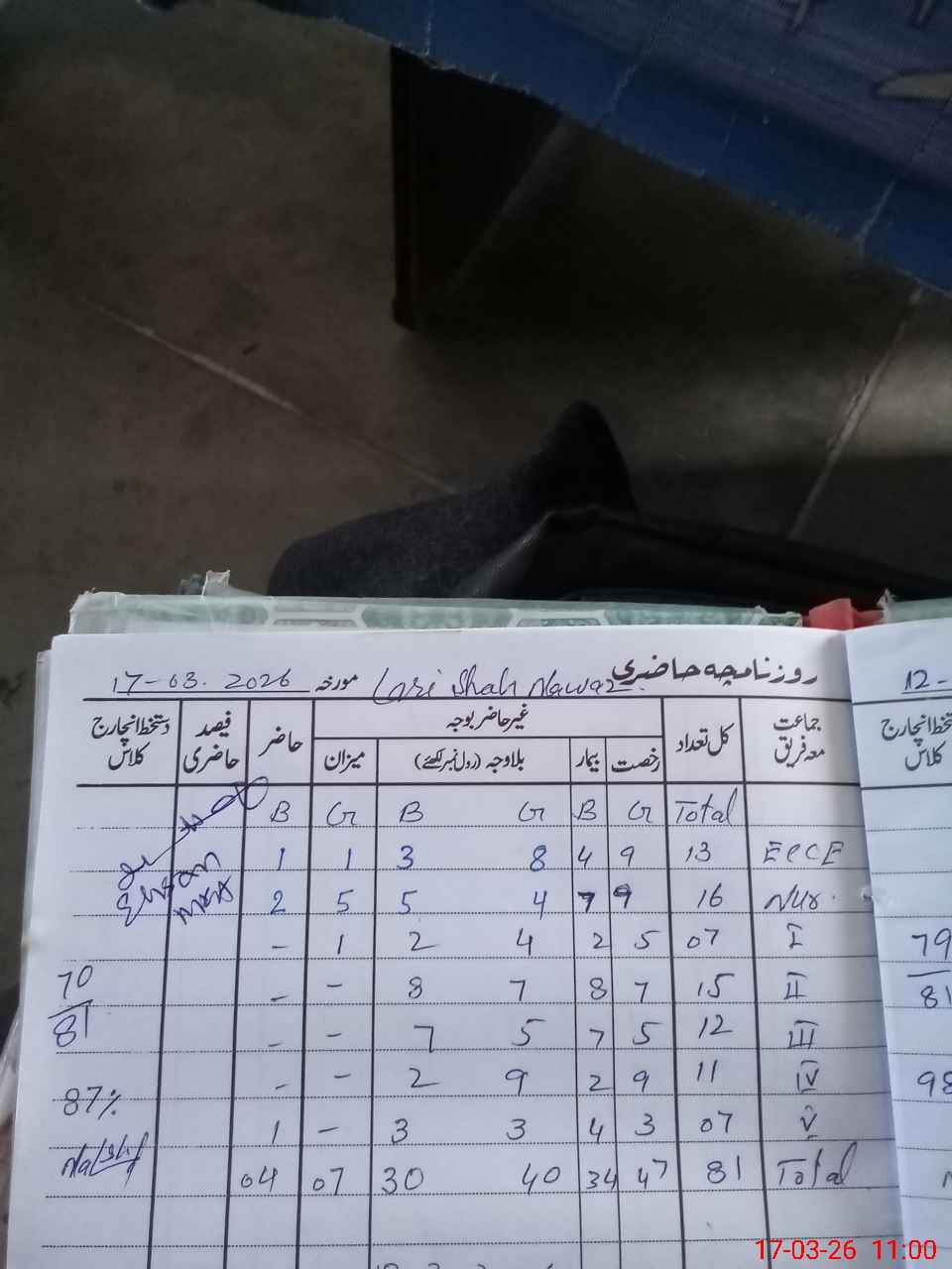 | No. of Students Present - Male | 0 | 3 | 2 | 8 | 7 | 2 | 3 | 30 | ||||||||