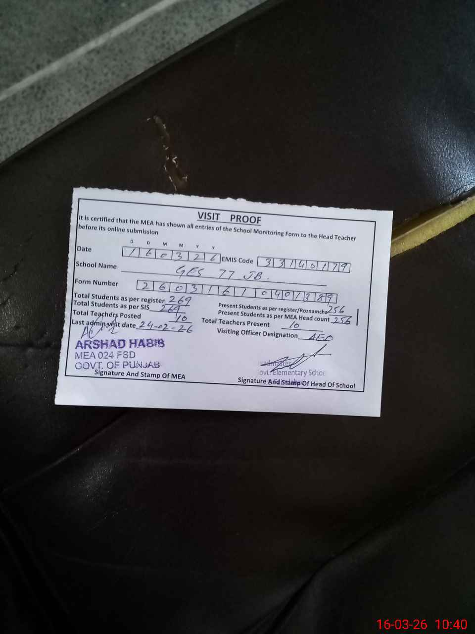 | EMIS Code: 33140179 | Name of School: GES CHAK 77 JB | |||