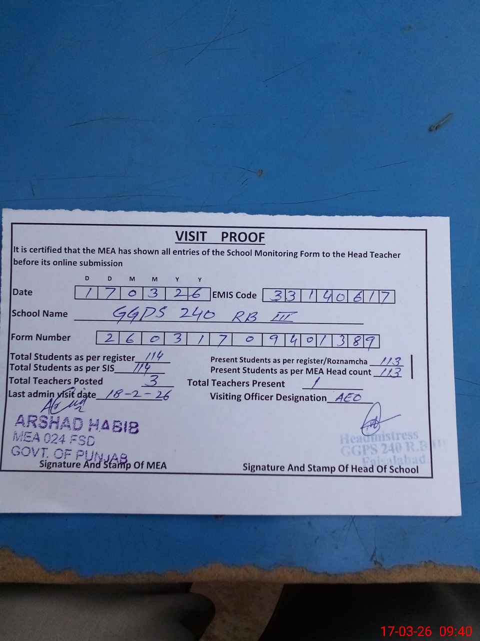 | EMIS Code: 33140617 | Name of School: GGPS 240 RB III | |||