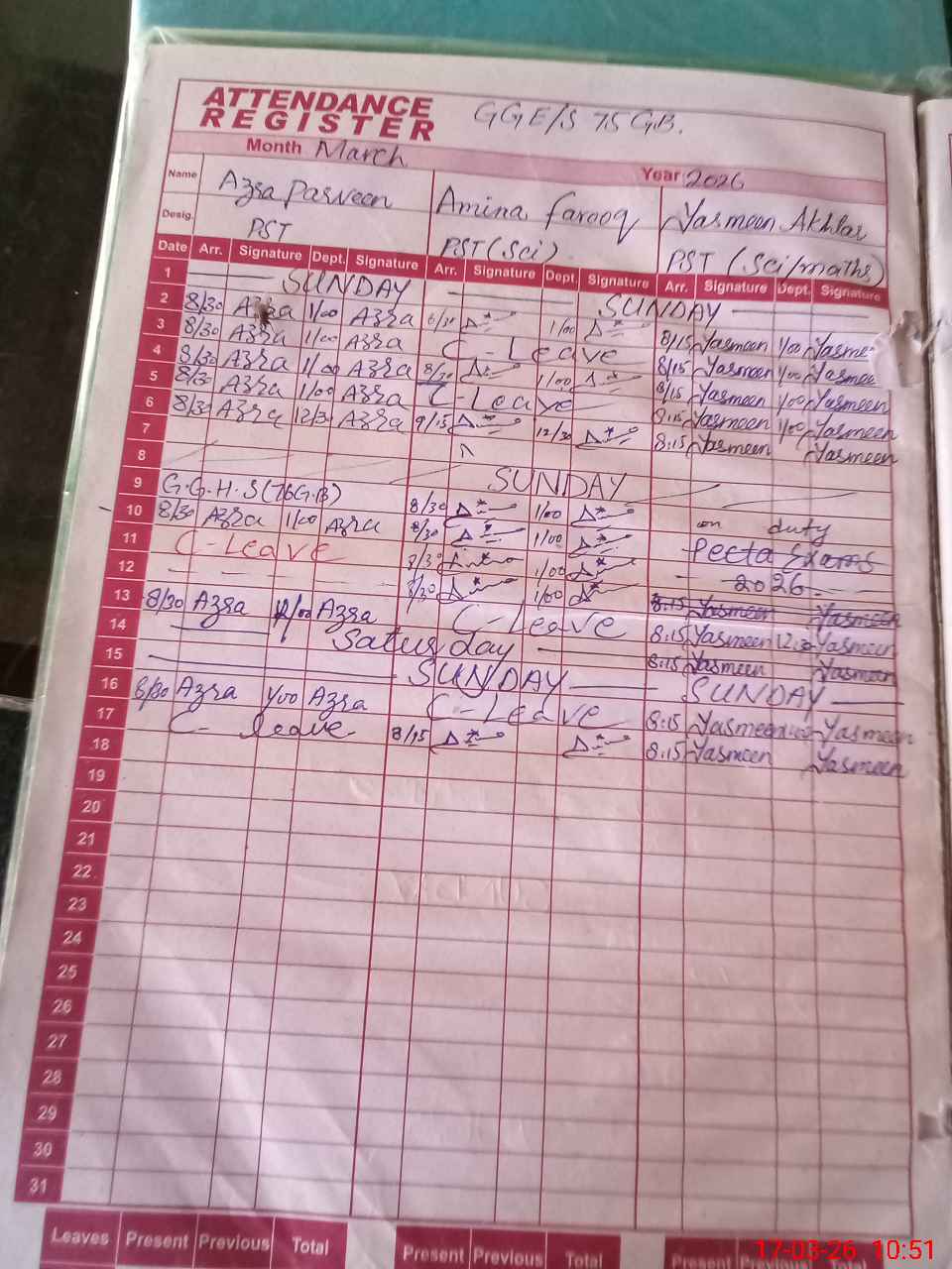 | 33**** | Az**** Pe**** | PST Arts | Regular | 0 | 0 | 0 | 0 | 0 | 0 | 0 | 0 | 0 | Medical |
