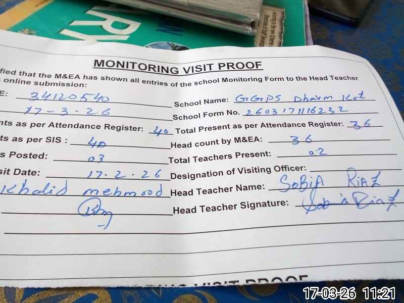 | EMIS Code: 34120540 | Name of School: GGPS DHARAM KOT | |||