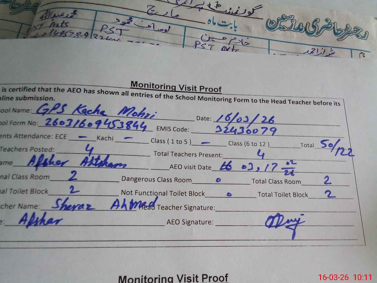 | EMIS Code: 32430079 | Name of School: GPS KACHA MOHRI | |||