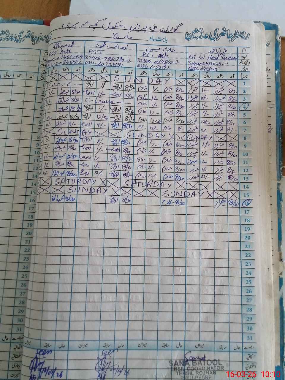 | CNIC | Full Name | Designation | R/C | Absence During Last Calender Month |