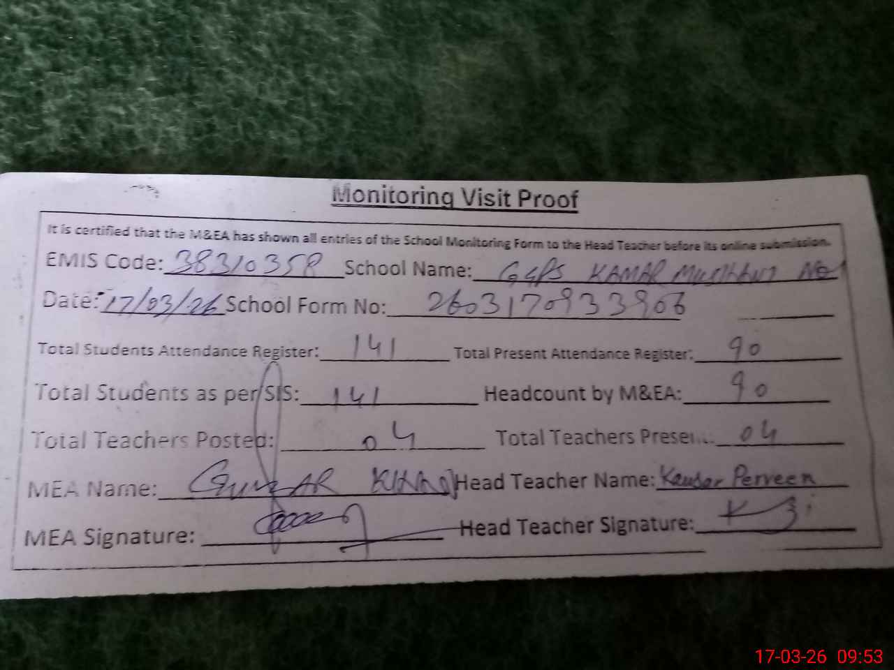 | EMIS Code: 38310358 | Name of School: GGPS KAMMAR MUSHANI NO.1 | |||