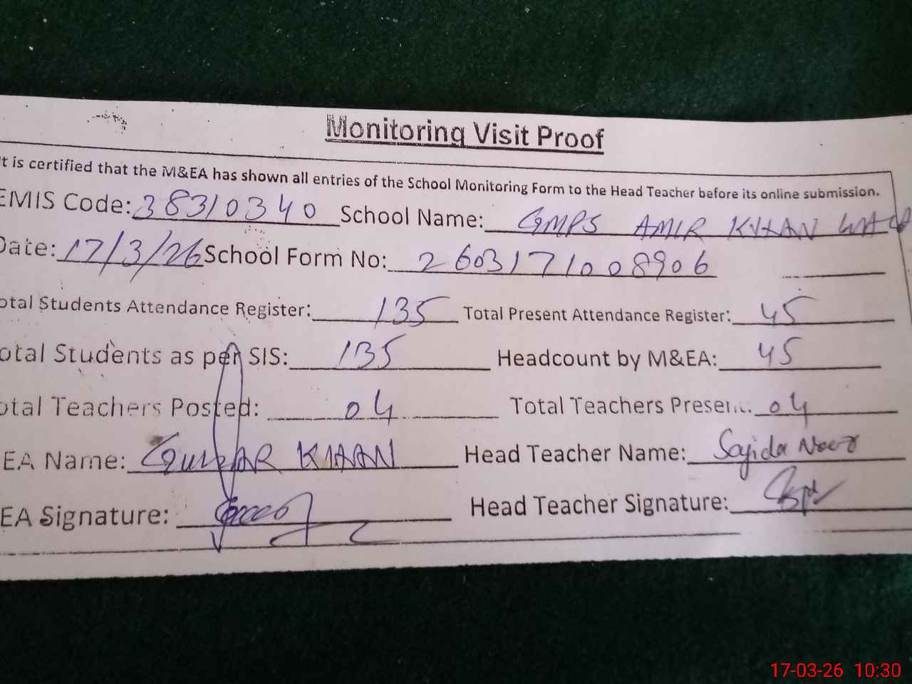 | EMIS Code: 38310340 | Name of School: GMPS AMIR KHAN WALA | |||
