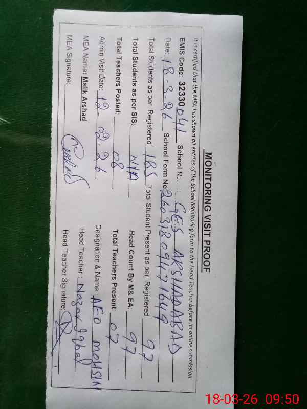 | EMIS Code: 32330041 | Name of School: GES ARSHAD ABAD | |||