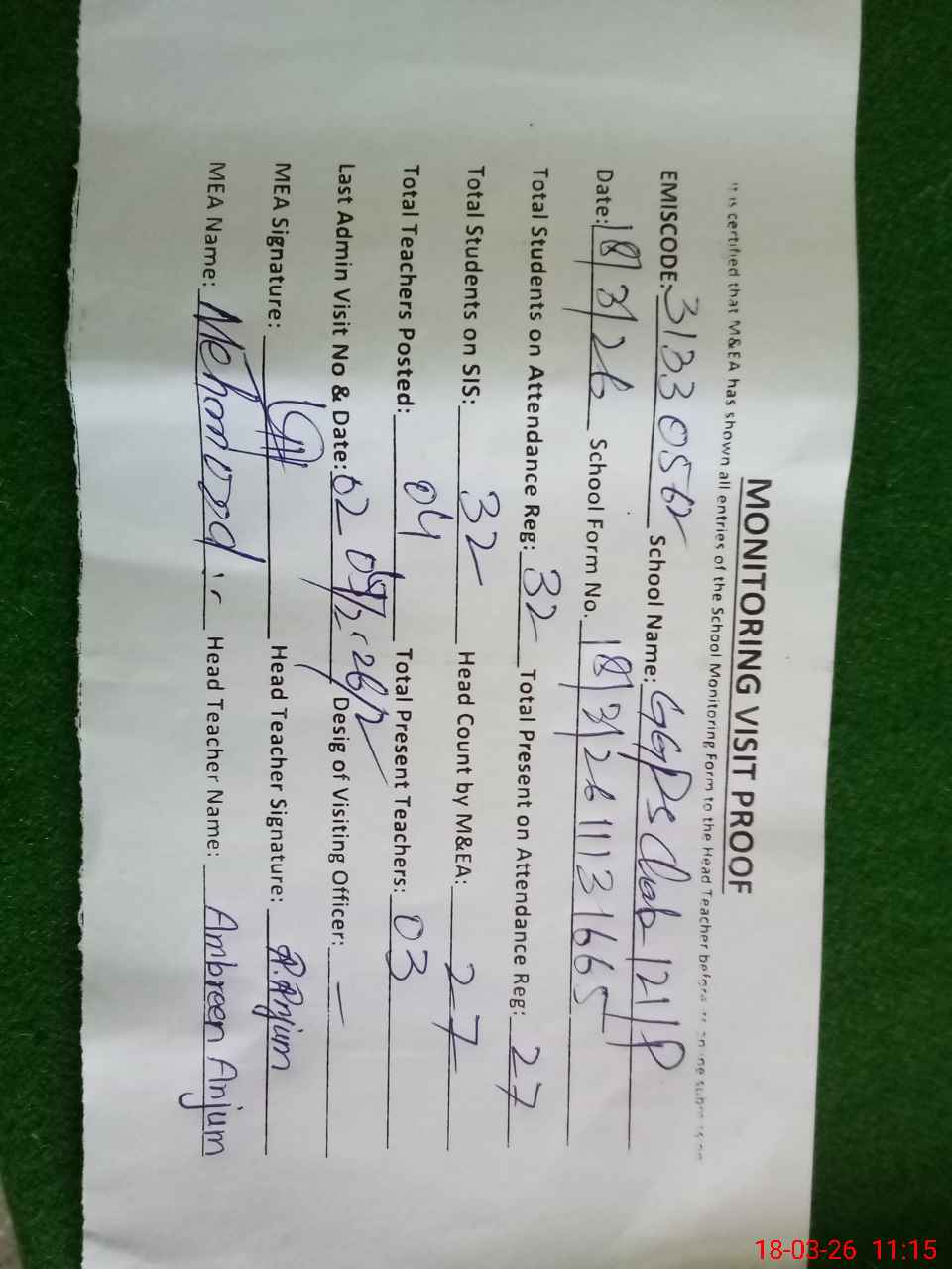 | EMIS Code: 31330562 | Name of School: GGPS 121/P | |||