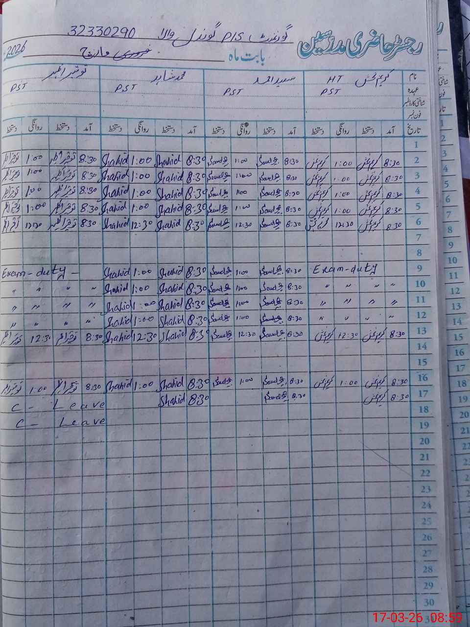 | EMIS Code: 32330290 | Name of School: GPS GONDAL WALA | |||