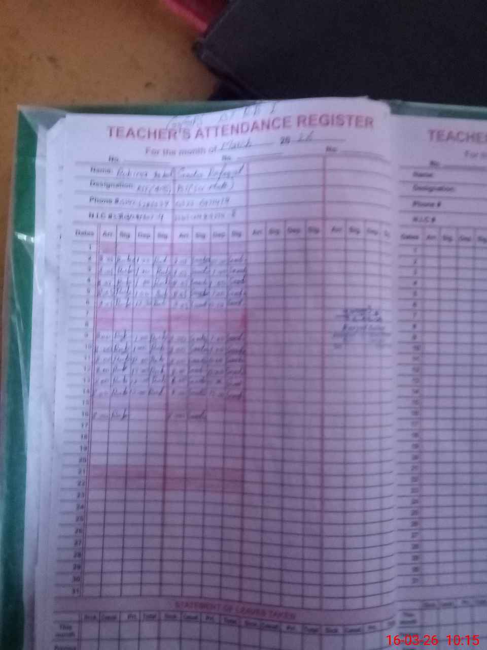 | Name: RO**** IQ**** Designation: (School Headmaster's/Headmistress's) PTC/JV Phone/Cell Number: 03**** |